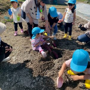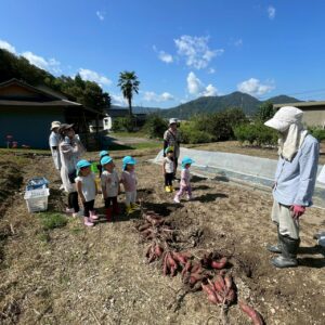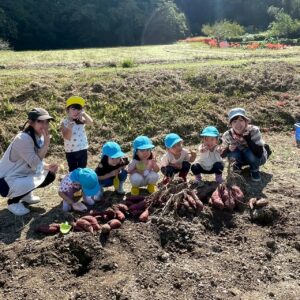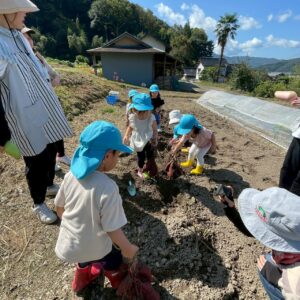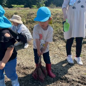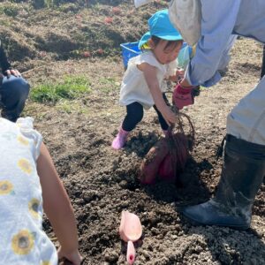 2025年10月1日 ひなた保育園 にじ組の園児6人と職員3人で芋掘り体験しました。