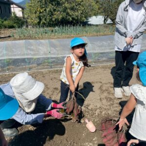 畑ではふかふかの土から(園児が一人で抜けるギリギリの硬さに仕込んでいただき)