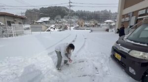 この日は雪が積もっていて、人数が揃うまで外で雪遊びをしました。